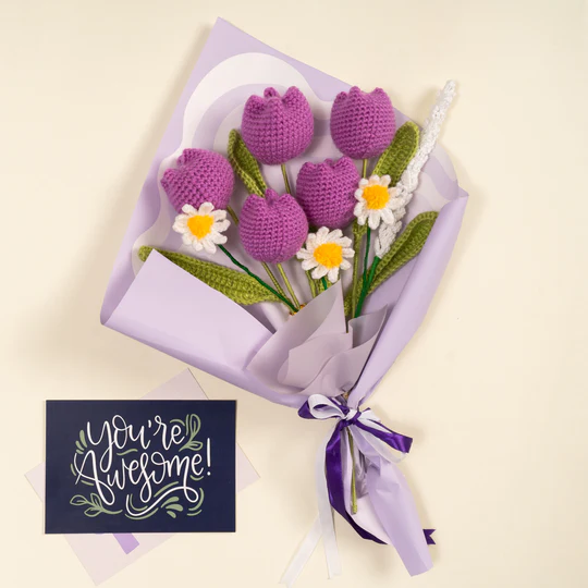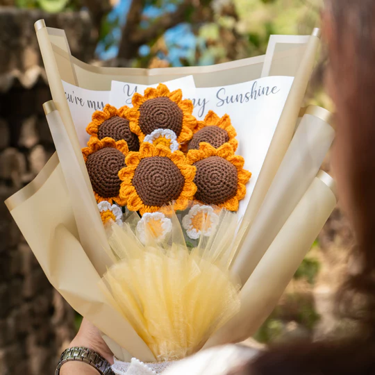 We start by crafting unique crochet flower designs using color combinations and patterns that suit your taste and occasion.