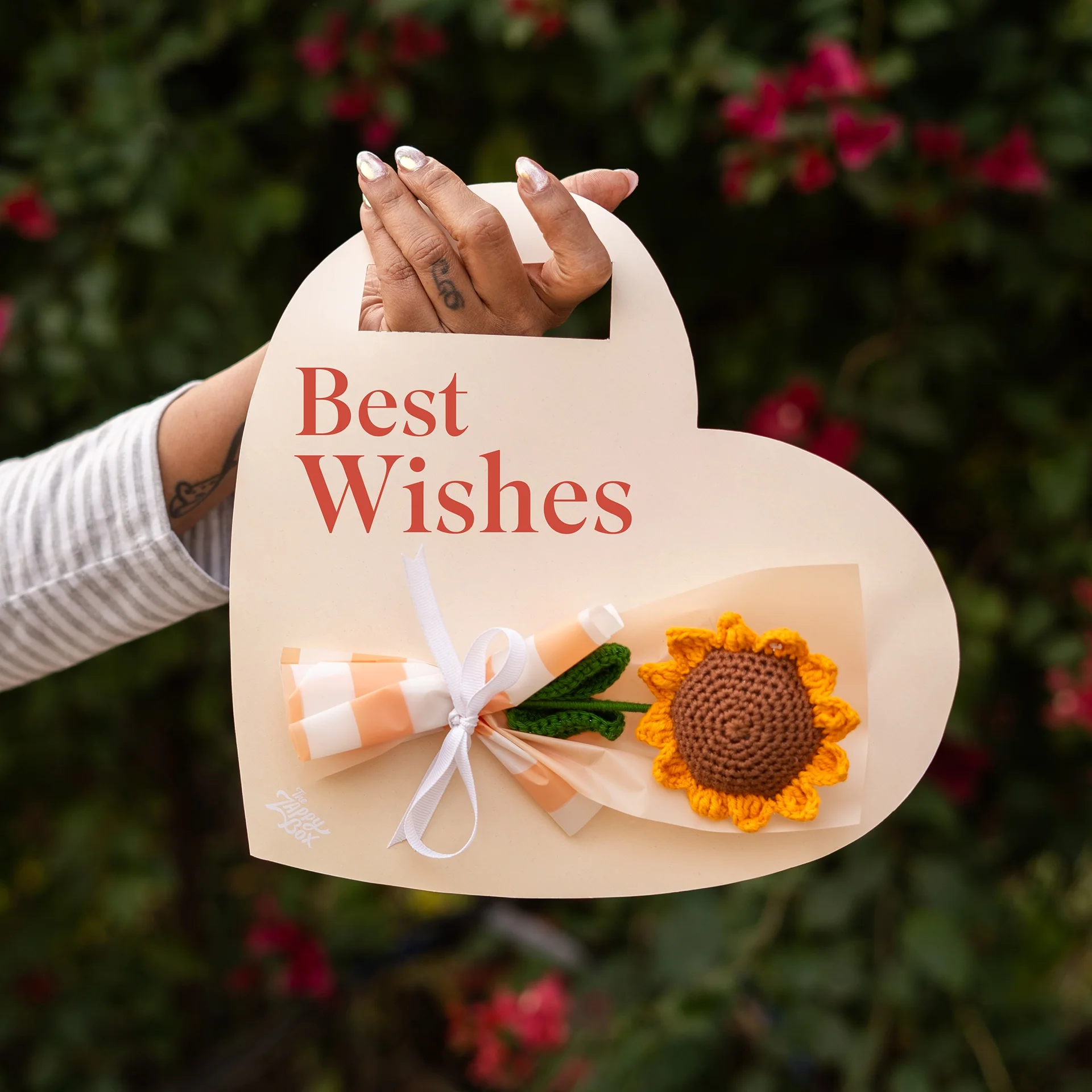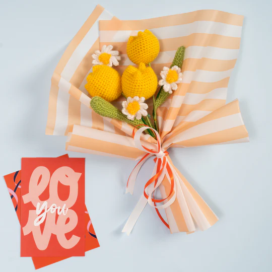 Each crochet flower is carefully packed to preserve its shape and quality during delivery.